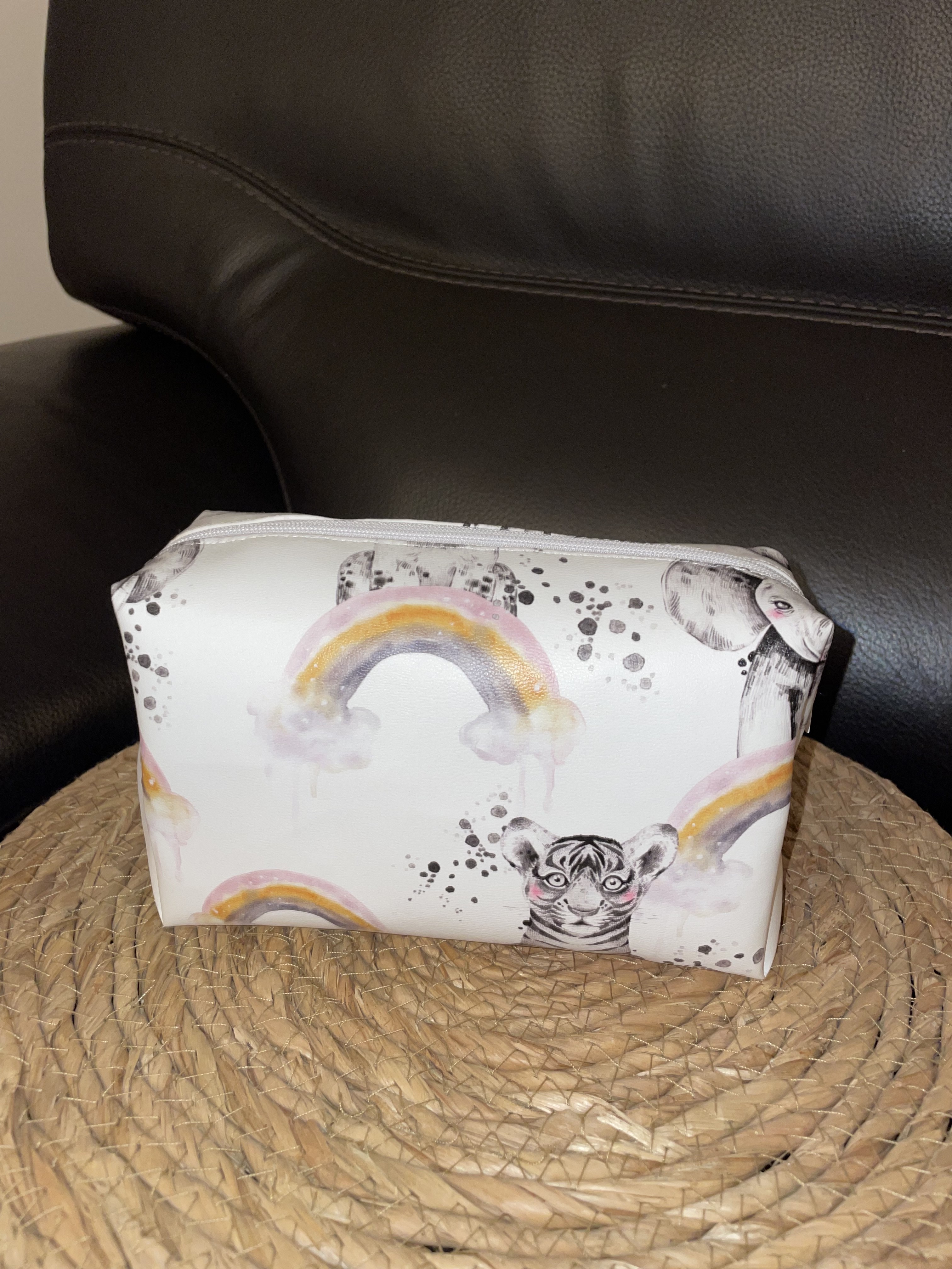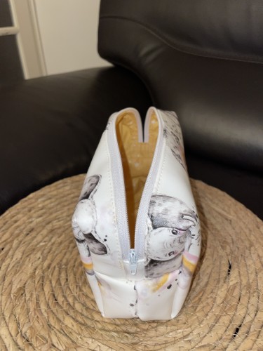 Petite trousse de toilette en simili cuir sur extérieur et coton enduit à l intérieur...