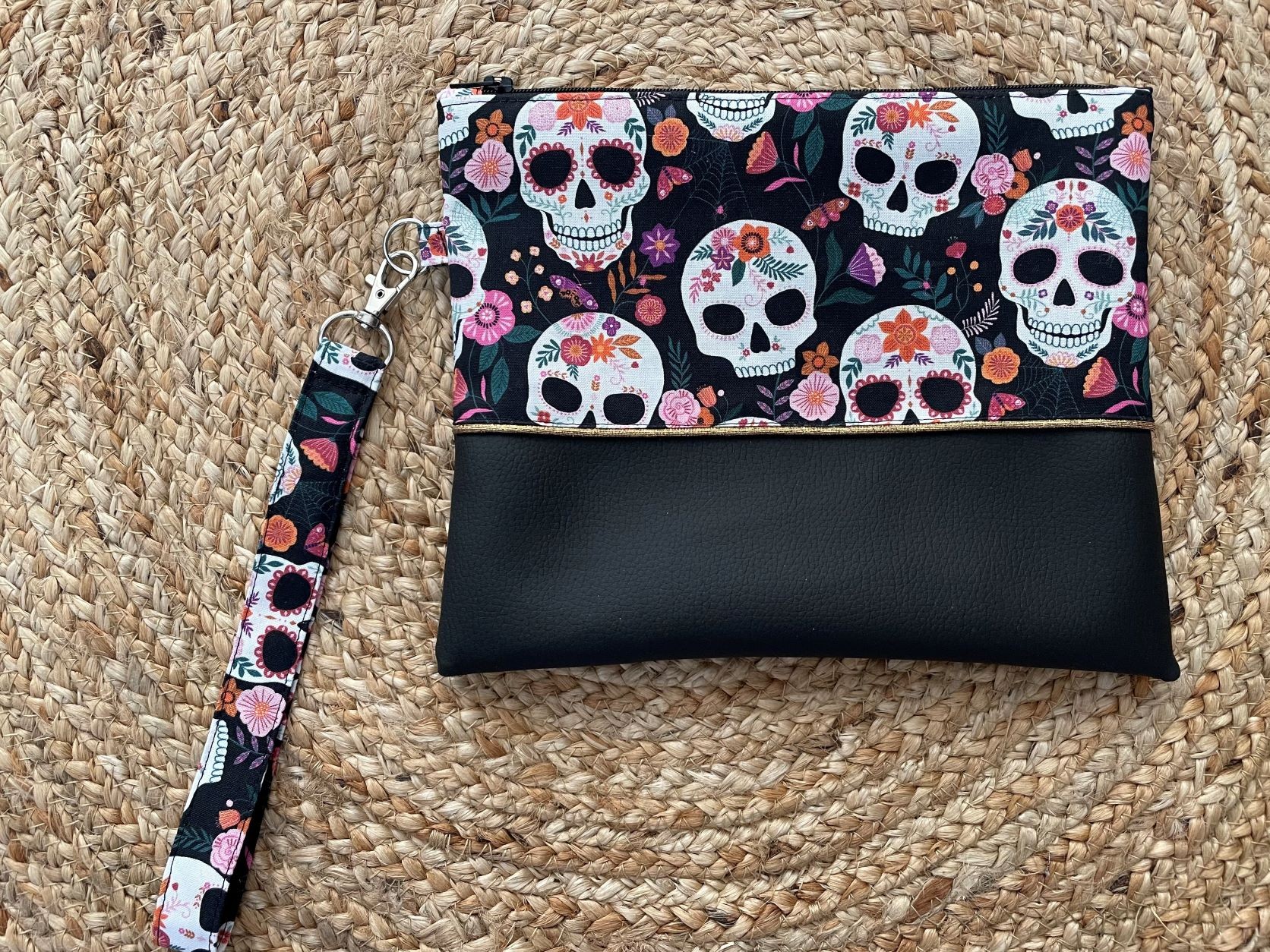 pochette plate sur le thème d'Halloween. Pratique pour l'emmener en soirée et y glisser son téléphone portable, sa carte bleue etc...