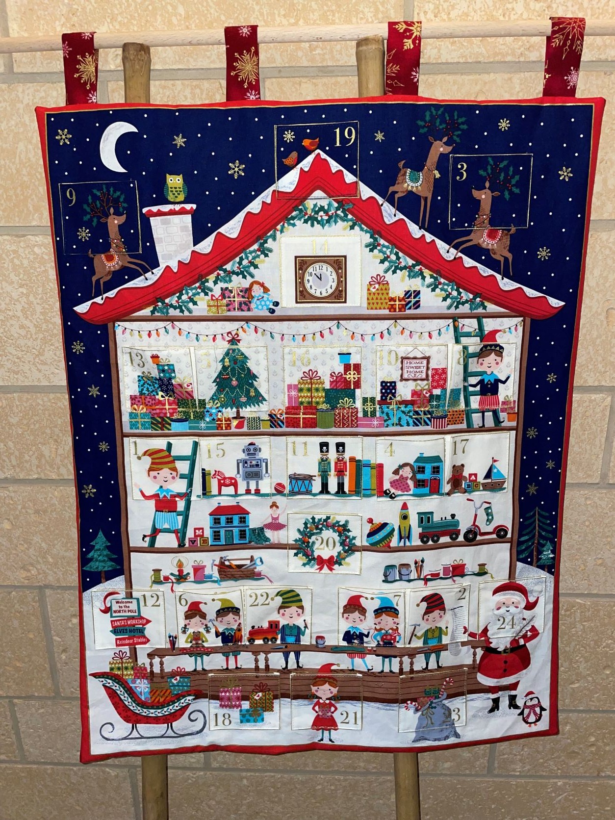 Calendrier de l' avent vide en tissu coton doublé de molleton pour plus de tenue avec 24 poches. Ce calendrier fera partie de vos traditions de Noël en famille , que vous pourrez utiliser année après année.